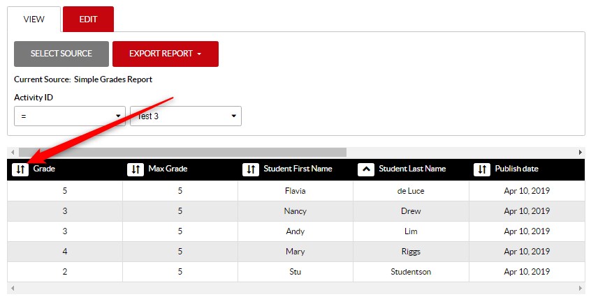 Grades Report shows metrics for one specific activity individually.