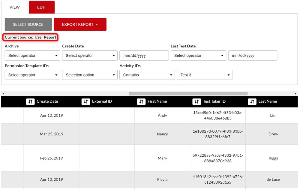 User Report gives general demographic and system usage information on test-takers.