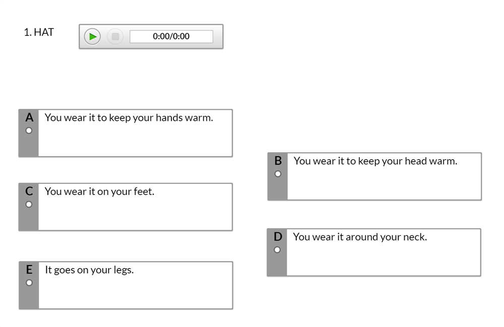 Whether you’re testing for vocabulary and grammar or comprehension and communication skills, you’ll find the appropriate activities and questions to use in XpressLab.